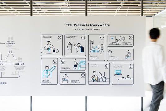 - 情報の受発信を活性化する - テクノフローワンの活動を新しい切り口で可視化した展示サインにより情報共有を円滑にし、発信力を高めています。