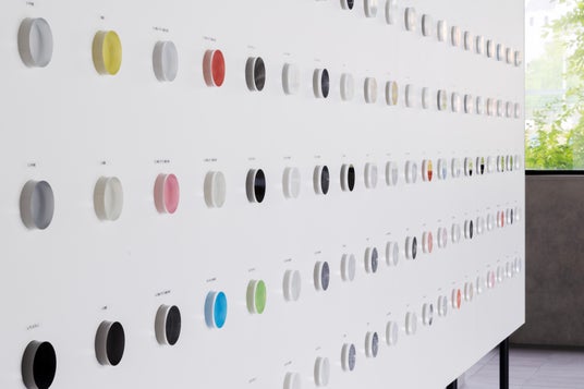 サインデザインと展示グラフィックを担当しました。この度はありがとうございました。本計画では、ワークショップやインタビューから導き出された「ワークデザインアイデア」の実現のため、初期段階から設計チームやクライアントと相談しながらプロジェクトに取り組みました。サインや展示では、エントランスの100種類のサンプルを手にとって比較できる製品展示や、自社製品を利用したサインなど、テクノフローワンの技術力や取り組みを社内外に発信するための工夫が随所に組み込まれています。