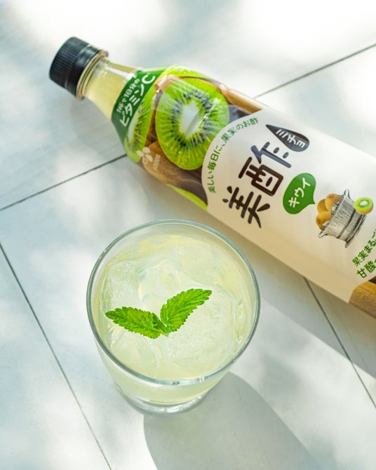 ビネガードリンクです。この度新たに販売経路を拡大し、よりお求めやすくなった「美酢キウイ」は、コップ1杯で1日分のビタミンC※1を摂ることができます。キウイの本来の爽やかな風味を最大限に引き出し、フルーティーな甘みと果実酢ならではのすっきりとした酸味が調和する味わいに仕上げました。特に紅茶との相性が良く、紅茶に合わせるとフルーツティーのような華やかな味わいをお楽しみいただけます。冬の寒い季節にはお湯で割ることで、心も体もほっと温まるひとときが味わえます。シーンに合わせて、お好みのスタイルでご堪能ください。