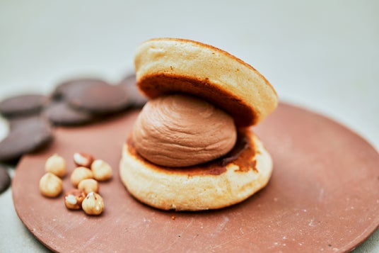 深い甘みと複雑な旨みを持つ本みりんを使用し、銅板でじっくりと焼き上げたどら焼きの中に、コロンビア産の華やかなチョコレートクリームとヘーゼルナッツを挟みました。