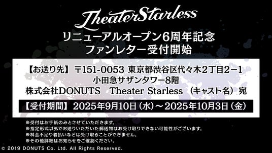 ◆スターレス リニューアルオープン6周年記念 ファンレター受付開始
