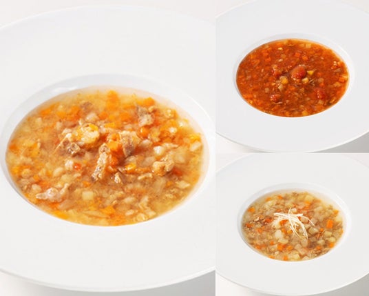 有機野菜のミネストローネ 3種生姜と大根入り、濃厚トマト仕立て、たっぷり有機野菜と、特色ある3種類のミネストローネを揃えました。