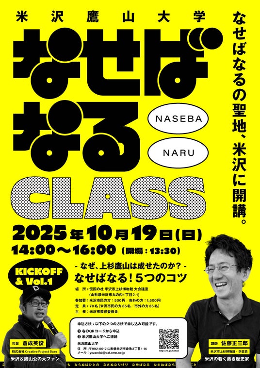 その名は『なせばなるクラス』! ー 名君 上杉鷹山の知恵を現代に生かす新しい講座が、山形県米沢市の「米沢鷹山大学」に開講!