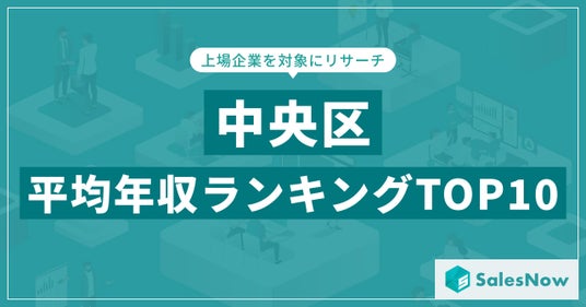 株式会社SalesNow(本社:東京都渋谷区、代表取締役:村岡功規、以下「当社」)は、国内540万社の企業情報を完全網羅した日本最大級のデータベース「SalesNow DB」より、上場企業を対象とした「市区町村別の平均年収ランキング」を発表しました。本リリースでは、各都市別のデータをもとに、今回は「中央区に本社を置く企業」を対象に、平均年収にフォーカスしています。