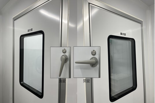 気密性・安全性を両立する出入口のインターロック付きエアタイトドア(どちらかが開いていたらもう一方が開かない仕組み)