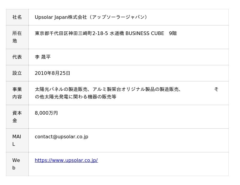 《Upsolar Japan株式会社について》