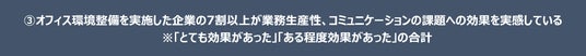 3.オフィス環境整備を実施した企業の7割以上が業務生産性、コミュニケーションの課題への効果を実感している