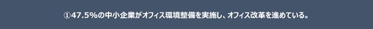 1.47.5%の中小企業がオフィス環境整備を実施し、オフィス改革を進めている