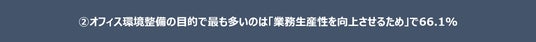 2.オフィス環境整備の目的で最も多いのは「業務生産性を向上させるため」で66.1%