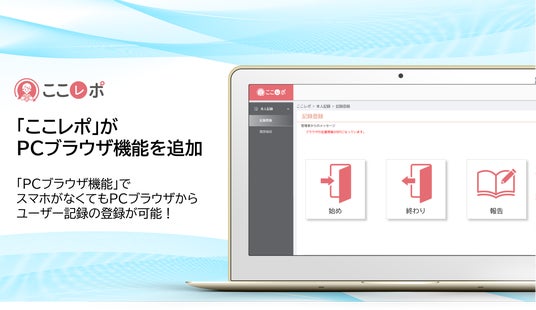 これまでスマホアプリでのみ登録が可能であった「始め」、「終わり」、「報告」といったユーザーの登録作業をPCブラウザサイトからも可能にするための機能です。スマホアプリとの併用も可能です。