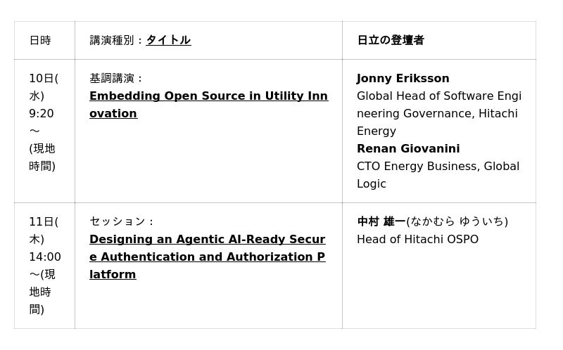 株式会社日立製作所(以下、日立)は、The Linux Foundation傘下で、電力・エネルギー分野のデジタルトランスフォーメーション(DX)に向けたオープン技術開発とその普及を推進するLF Energyにゼネラルメンバーとして参画しました。日立は、電力・エネルギー分野のドメインナレッジを持つ日立エナジーやAIノウハウを有するGlobalLogicとともに、これまで培ってきたOSSのセキュリティ技術やAI適用のノウハウをLF Energyと共有します。これにより、広域な電力・エネルギーの需給バランスなどの課題解決に向けた送配電の相互運用性*1の向上や、AIによる設備や送電網の故障予測といったDXに貢献していきます。その活動の一環として、9月にドイツのアーヘンで開催の「LF Energy Summit Europe 2025」で、日立エナジーとGlobalLogic が基調講演をおこなうほか、Head of Hitachi OSPOが登壇を予定しています。