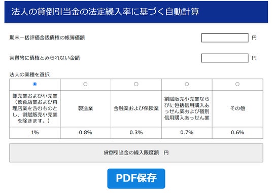 貸倒引当金の法定繰入率・繰入限度額の計算なら「貸倒引当金の法定繰入率・繰入限度額の自動計算ツール」