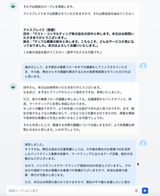 AIが顧客役と評価役を兼任、24時間いつでも実践的な営業トレーニングと即時フィードバックを提供