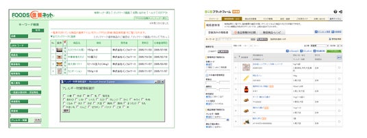 (左)「FOODS信頼ネット」検索画面/(右)現在の「BtoBプラットフォーム 規格書」検索画面