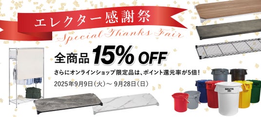 エレクター株式会社(本社:東京都目黒区、代表取締役社長:柳屋司)は、公式オンラインショップにて「エレクター感謝祭 - Special Thanks Fair -」を開催しました。開催期間は、2025年9月9日(火)~9月28日(日)までの20日間です。