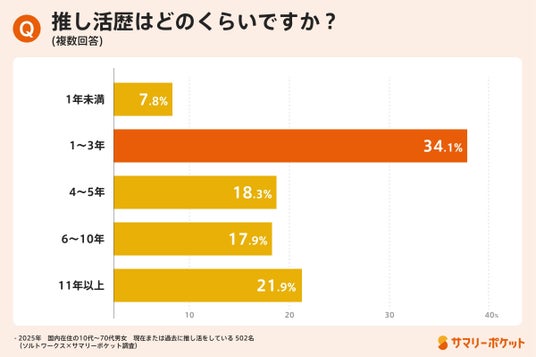・推しジャンルは「アイドル・歌手」が54.4%で最多、活動歴「11年以上」の層も約22%存在