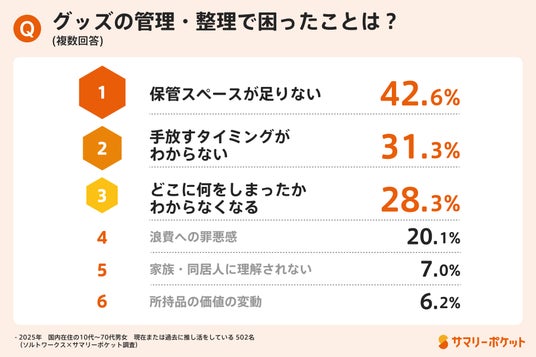 ■ 推し活グッズの収納問題、「保管スペース不足」が最多の悩みに ―― 約4割強の人が課題を実感