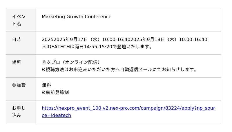 ■2025年9月17日(水)、18日(木)に開催されるセミナーイベント「Marketing Growth Conference 2025」に、弊社取締役の競仁志が登壇します。
