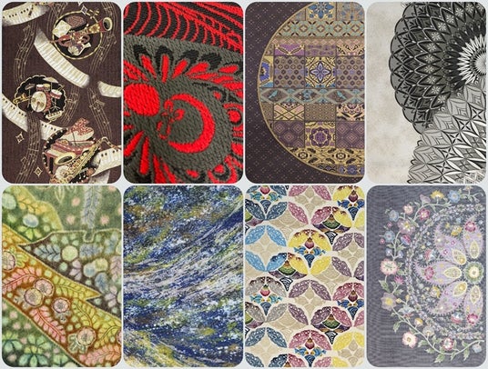 【博多織】筑前織物【西陣織】西陣まいづる/想屋 【京友禅】岡山工芸 【琉球紅型】西條庵 【染織】越後染織 【絞り】樋熊哲也 【大島紬】工房 中賀和 【帯の名門】扇や ほか 池田重子コレクションなど