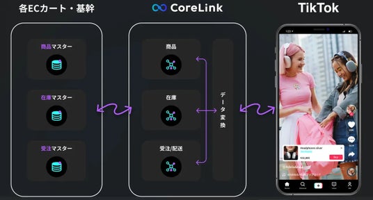 ハックルベリー社の「CoreLink for TikTok Shop」は、「CoreLink」の新たな連携機能として、ECカートやモールとTikTok Shop間のデータ連携(商品、在庫、受注、キャンセル)を自動化するサービスです。これにより、EC事業者は煩雑なデータ連携作業から解放され、TikTok Shopへの出店と運営をより簡単かつ効率的に行うことが可能になります。