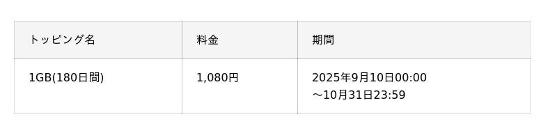 また、新規登録後7日間限定で購入いただけるウェルカムトッピングとして、通常1,260円で提供している1GB(180日間)を1,080円で提供します。