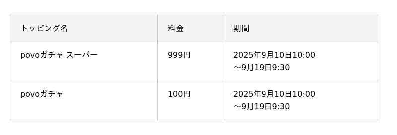 povoガチャ購入後、当選したデータをメールで即時配信します。