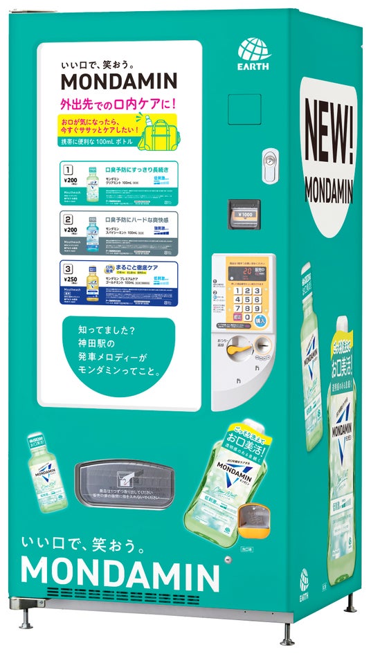 - 『モンダミン自販機』は、アース製薬株式会社(本社:東京都千代田区、社長:川端克宜、以下 「アース製薬」)と当社の共同企画自販機で、アース製薬がネーミングライツを取得している神田駅 北口(モンダミン口)の東京メトロ銀座線のりかえ階段付近に設置します。