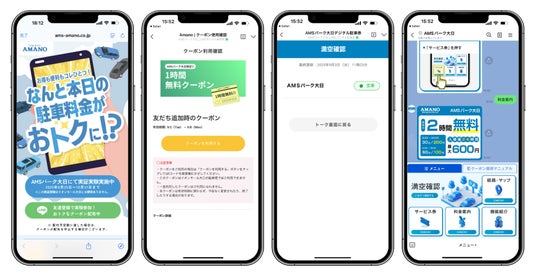 実証実験では、実証の場である「AMSパーク大日」(大阪府守口市大日東町11)の専用LINE公式アカウントに紐づくLINEミニアプリを開発し、割引クーポンの配信と、駐車場に関する情報提供をおこなっています。