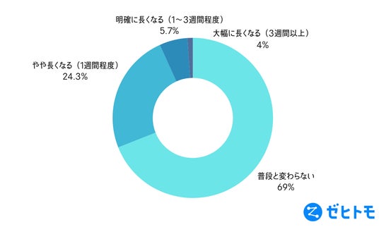 「普段と変わらない」が約7割と多数派だが、「やや長くなる」が2割超