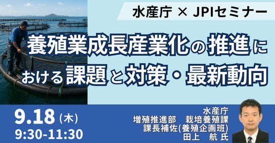 【JPIセミナー】水産庁「養殖業成長産業化の推進における課題と対策及びその最新動向について」9月18日(木)開催