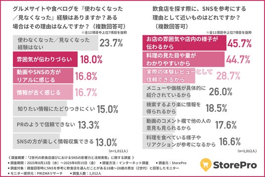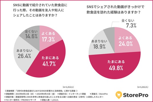 StorePro(所在地:東京都港区)は、SNSを参考に飲食店を選んだことがある18歳~28歳の男女(Z世代)を対象に、「Z世代の飲食店選びにおけるSNSの影響力と活用実態」に関する調査を実施しました。