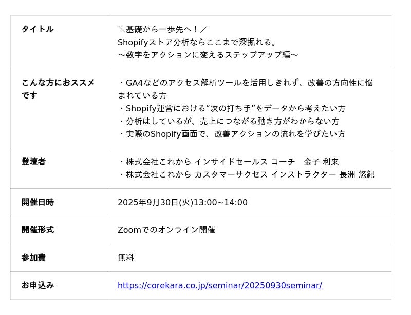 脱・“見てるだけ”分析!Shopifyストア分析を“利益”に変える実践的オンラインセミナーを9月30日(火)に無料開催