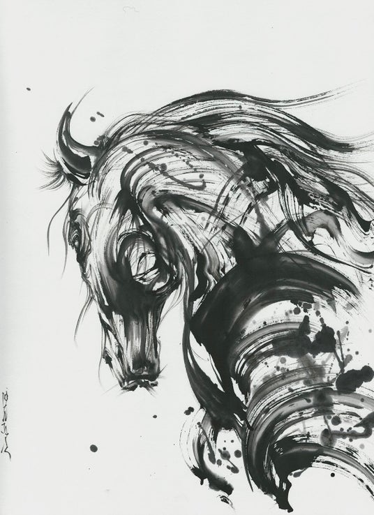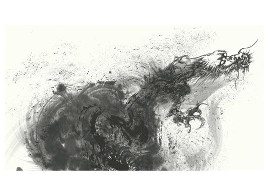 西元はこれまで、龍や虎、侍、アスリートといった生命の力を象徴するモチーフを通じて、従来の墨絵ではなし得なかった躍動と緊張感を描き出してきました。その筆致は常に生命の本質に迫り、現代的なスピード感を孕みながらも、静謐な美を保ち続けています。