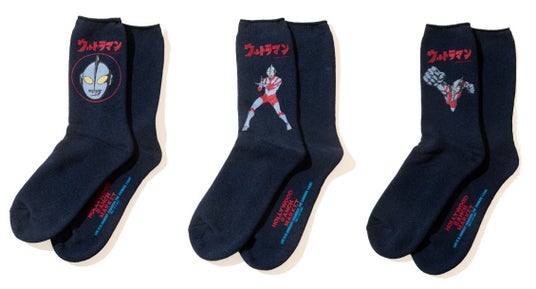 左)フェイス ソックス 中)スペシウム ソックス 右)シュワッチ ソックス )¥3,850/カラー:NAVY/サイズ:ONE