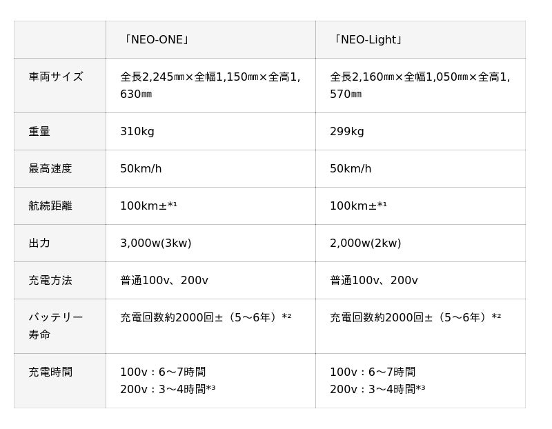 *² バッテリーの寿命表記は、充電方法や充電頻度、走行距離、ご使用の環境等の影響を受けるため、おおよその目安となります。