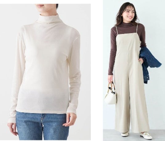また、残暑厳しい初秋から着用できるように、締め付け感がなく暑苦しくない着心地と、重ね着インナーとしてはもちろん、一枚でも着ることができる光沢のある素材感にもこだわりました。