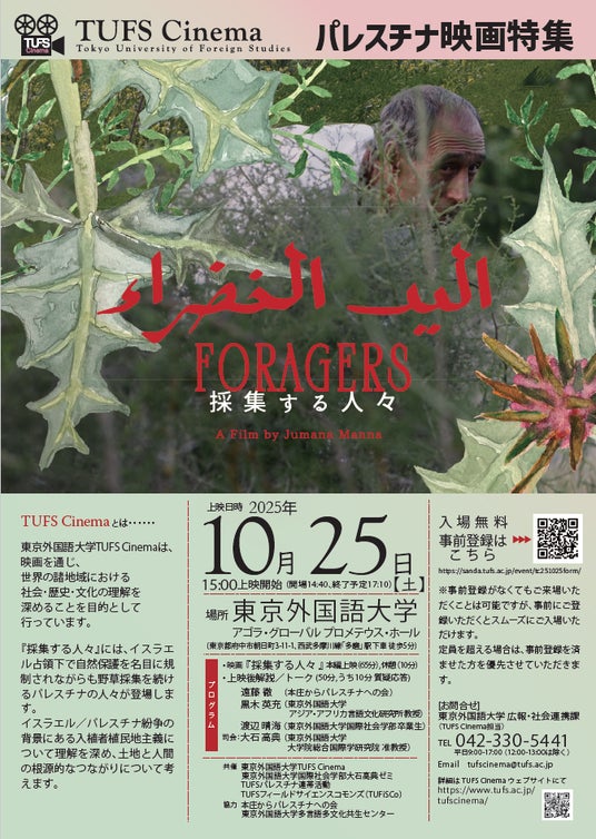 東京外国語大学(東京都府中市、学長:春名 展生)は、2025年10月25日(土)に、パレスチナ映画『採集する人々(原題:Foragers)』の上映会を開催いたします。