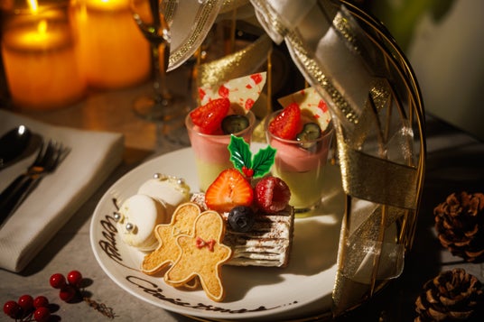パティシエが一皿ひとさら心を込めて仕上げる、クリスマス限定のスイーツプレートをお楽しみいただけるプランです。クリスマス装飾を施したお部屋で、アイシングクッキーやブッシュ・ド・ノエルを盛り合わせた一皿を。きらめくスパークリングワインでの乾杯から始まる、プライベートな聖夜をお過ごしください。