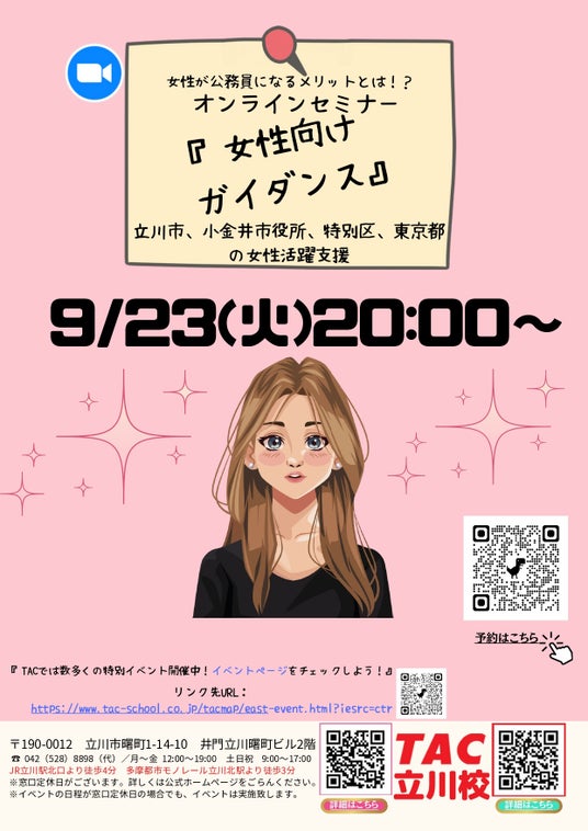 【TAC公務員】「女性が公務員になるメリットとは?!女性向けセミナー」を9/23(祝火)にオンラインで開催!