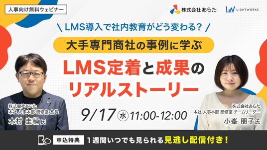【9/17開催無料ウェビナー】「LMS導入で社内教育がどう変わる?」大手専門商社の事例に学ぶLMS定着と成果のリアルストーリー
