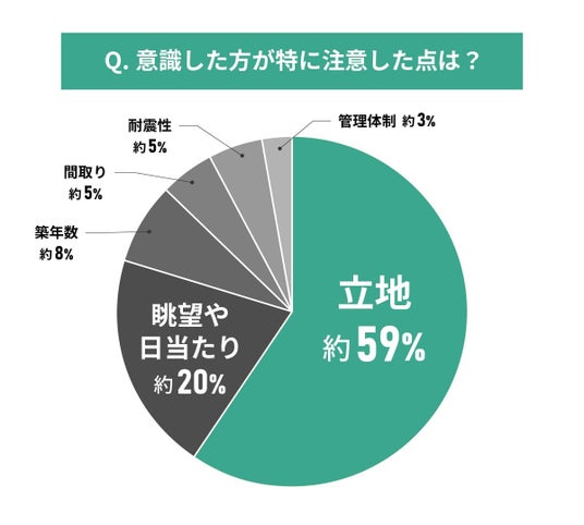約6割の購入者が資産価値を意識している結果は、不動産投資に対する知識の普及と、将来への備えとしての不動産購入が定着していることを示しています。特に立地重視の傾向は、長期的な価値保全を重視する合理的な判断として評価できます。