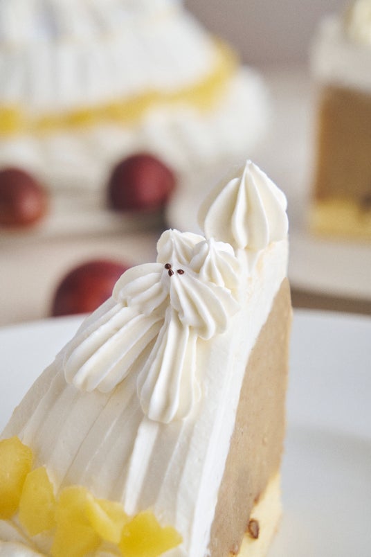 ふかふかのスポンジとマロンクリームの間には、ほんのりレモンをしのばせて爽やかなアクセントをプラス。濃厚なのに軽やかな後味が特徴で、見た目のかわいらしさと味の奥深さを両立しました。
