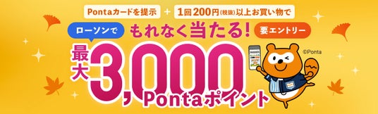 ローソンでのお買い物でPontaカードを提示するともれなく最大3,000Pontaポイントが当たるキャンペーンを実施