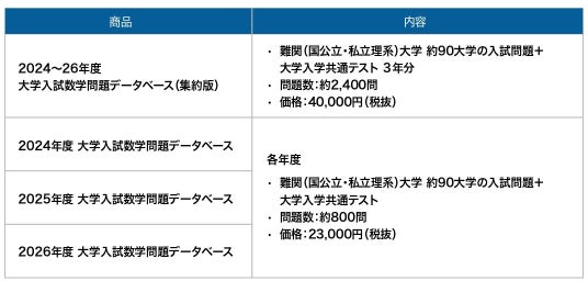 Q.Bankで利用できる問題のデータベースに、河合塾グループのKIESが制作・提供する解答付き大学入試問題を収録し、2026年春から4商品を販売します。河合塾講師陣が執筆した高品質な解答を問題と併せて収録予定で、先生のテスト・プリント作成や生徒の大学入試対策に最適です。