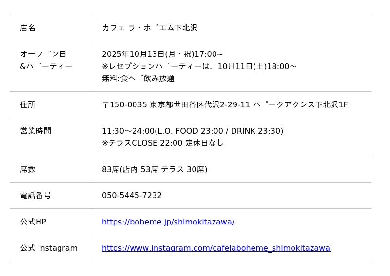 カフェ ラ・ボエム下北沢 10月13日OPEN!