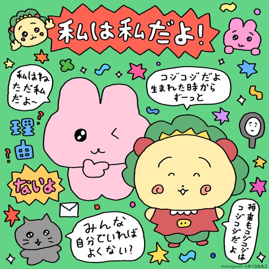 みんなの幸せを願う「チェゴシム」と、何気ないセリフが時に真理を突く「コジコジ」、それぞれの世界観をより多くの人に届けたいという思いから、今回のコラボレーションが実現しました。POP UP SHOPにて販売するアイテムは、 「コジコジ」と「うさゴシム」の刺繍をあしらったトートバッグやポーチ、 「私は私だよ!」「思うままに生きよう」など、ありのままの自分を肯定してくれるようなメッセージを散りばめたTシャツやクリアファイルなど、コラボアイテム15点を中心に展開。「チェゴシム」の定番人気商品である“お守りカード”は、コラボ特別バージョンの5種に加え、既存のラインアップも含めた計65種以上を販売予定です。■ チェゴシム×コジコジ コラボアイテム