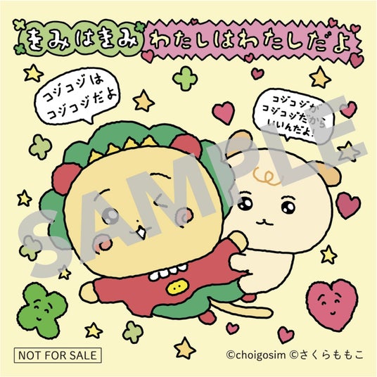 「きみはきみ、わたしはわたしだよ」をテーマに開催する本イベントでは、チェゴシム風のタッチで描かれた両キャラクターのコラボアートをあしらった店内にて、トートバッグやポーチ、お守りカードなど多数の商品を販売するほか、キャラクターたちのセリフが印象的なフォトスポットも登場いたします。また、購入金額や条件に応じてオリジナルクリアカードやステッカーがもらえる、ノベルティプレゼントも実施いたします。
