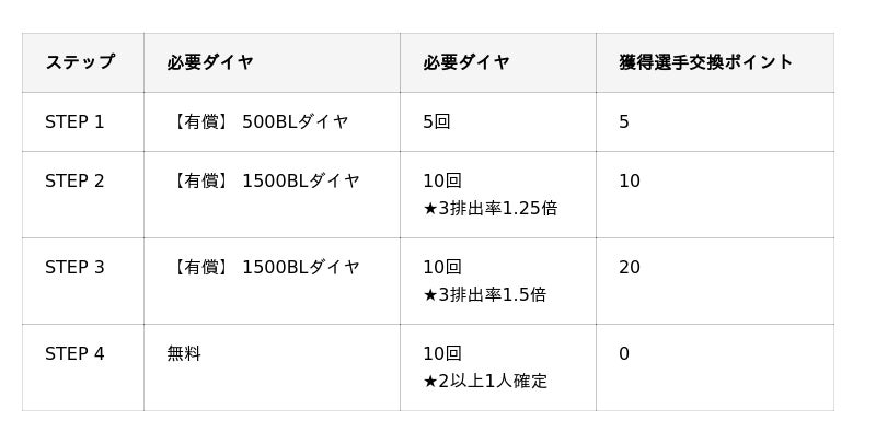 今回のステップアップ選手ガチャには周回制限はなく、何度でも繰り返し挑戦できます。