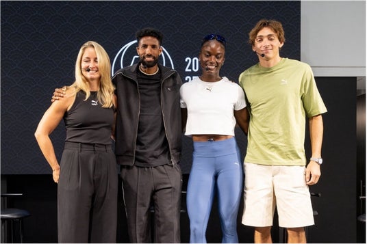 プーマ ブランドセンター東京にて開催された特別トークイベントには、プーマのグローバルブランドアンバサダーであるウサイン・ボルト氏をはじめ、モンド・デュプランティス選手(棒高跳 世界記録保持者)、ジュリアン・アルフレッド選手(女子短距離)、アマナル・ペトロス選手(男子マラソン)が登壇しました。