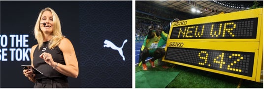 PUMA Vice President エリン・ロンジンは、プーマがアスリートとともに未来の速さを創造する姿勢について語り、「私たちは常にアスリートと協力しながら、限界を押し広げ、何が可能かを追求しています。東京は革新の中心地であり、ここでプーマのイノベーションを紹介できることは大きな意味があります」と述べました。さらに、最新の研究結果について「プーマの最新イノベーションを搭載したシューズを履けば、史上最速のランナーであるボルト氏は、100メートルを9.42秒で走ることができたと推定されています」と発表、これを受けてボルト氏は、「今のシューズを履いていたら違ったかもしれませんね」と笑顔で応じました。